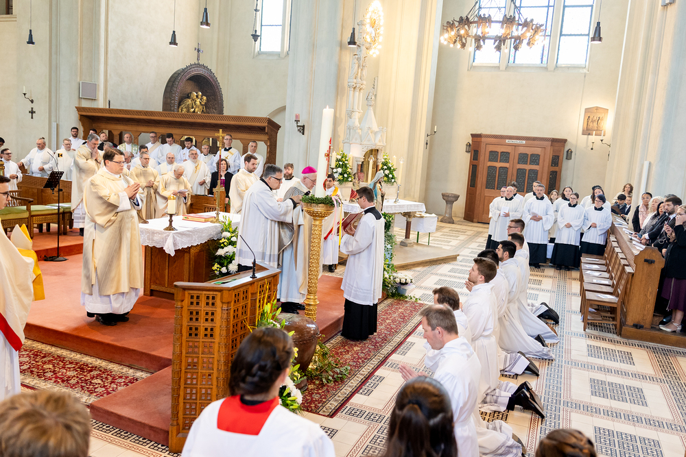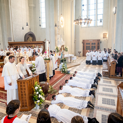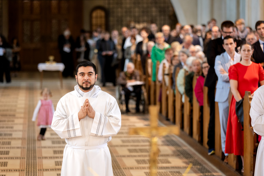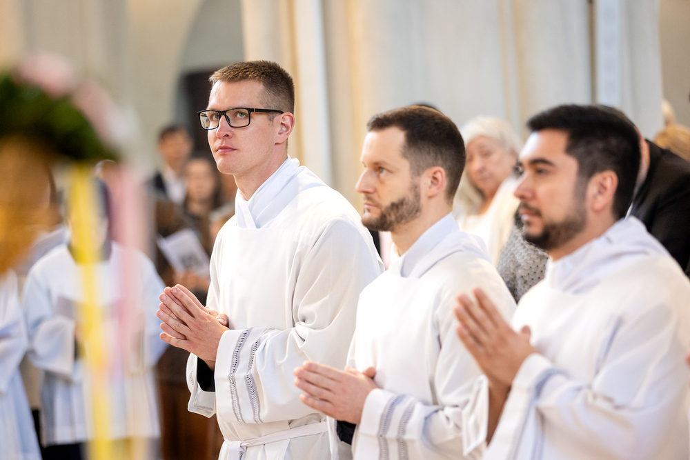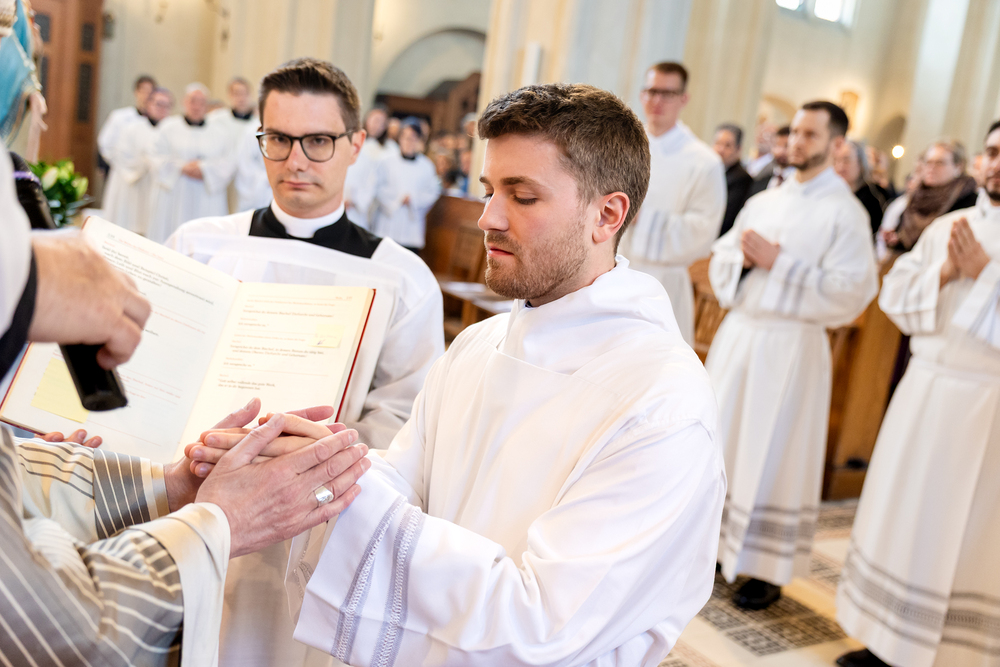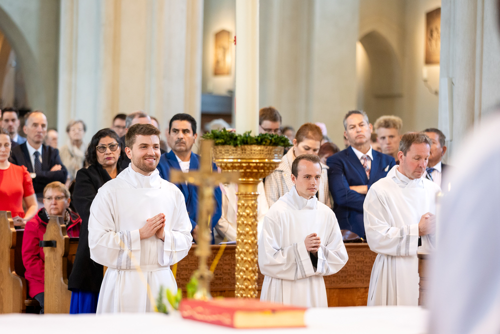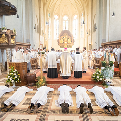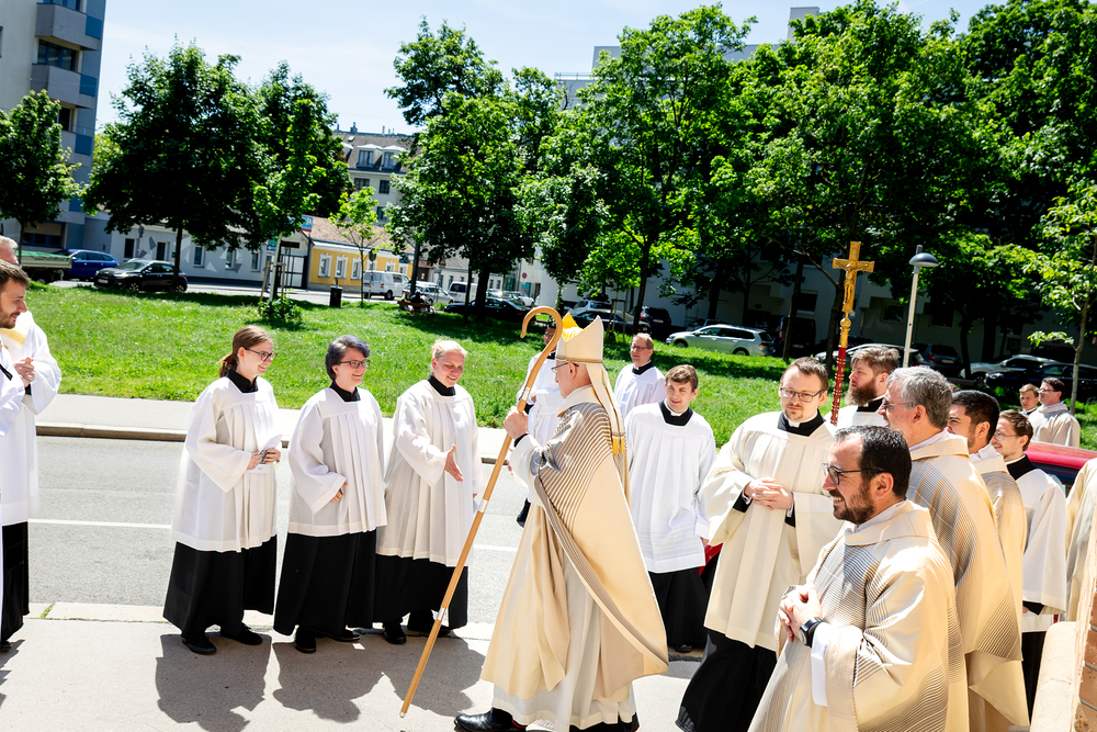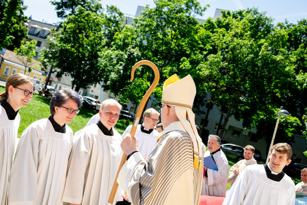Am 10. Mai weihte Weihbischof Franz Scharl in der Pfarrkirche St. Leopold Donaufeld sieben Männer zu Diakonen für die Erzdiözese Wien. Die Kandidaten kommen aus verschiedenen Gemeinschaften: drei aus dem Wiener Priesterseminar, einer aus dem Benediktinerpriorat St. Josef in Maria Roggendorf und drei aus dem diözesanen Missionskolleg „Redemptoris Mater". Manuel Rennhofer, Joachim Loshehand und Julius Moses Münzer kommen aus dem Wiener Priesterseminar, P. Leo Maria Zehetgruber gehört dem Benediktinerpriorat St. Josef in Maria Roggendorf an drei weitere Kandidaten stammen aus dem diözesanen Missionskolleg „Redemptoris Mater“. Diese Vielfalt unterstreicht die Breite der geistlichen Berufungen in der Erzdiözese. Wir waren mit der Kamera dabei.