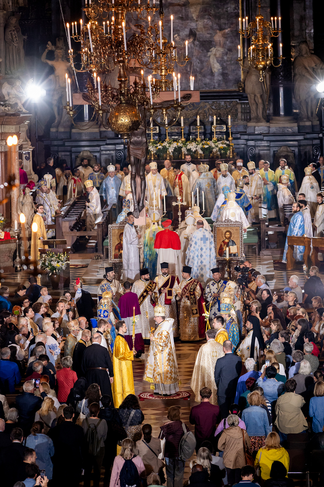 Gottesdienst im byzantinischen Ritus war Mittwochabend liturgischer Höhepunkt der Wiener Vollversammlung der Bischöfe der katholischen Ostkirchen Europas - Kardinal Schönborn in Predigt: "In der Liturgie sind wir ganz besonders mit dem Himmel verbunden", gerade in Zeiten des Krieges und der Not. Wir waren mit der Kamera dabei.