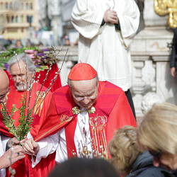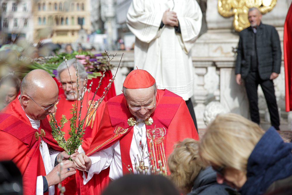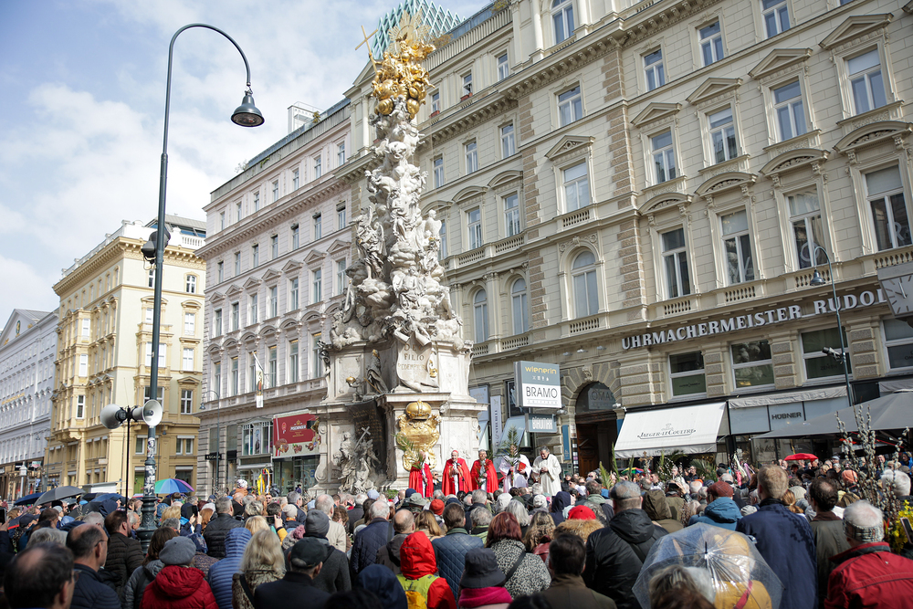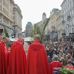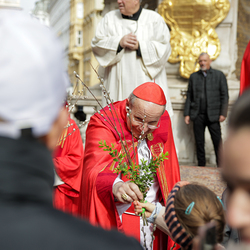 Traditionell werden am Palmsonntag, eine Woche vor Ostern, in der Wiener Innenstadt die Palmkätzchen von Kardinal Christoph Schönborn gesegnet. Die Palme ist ein Symbol des Sieges und steht im Christentum für das ewige Leben. Wir waren mit der Kamera dabei.